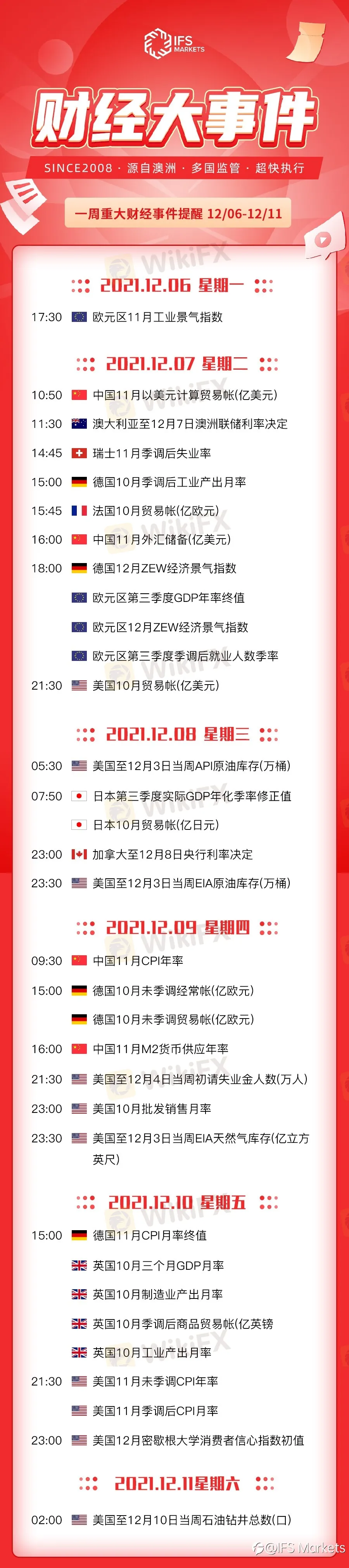 摘要:IFS Markets带您速揽本周财经大事(12.06—12.11)