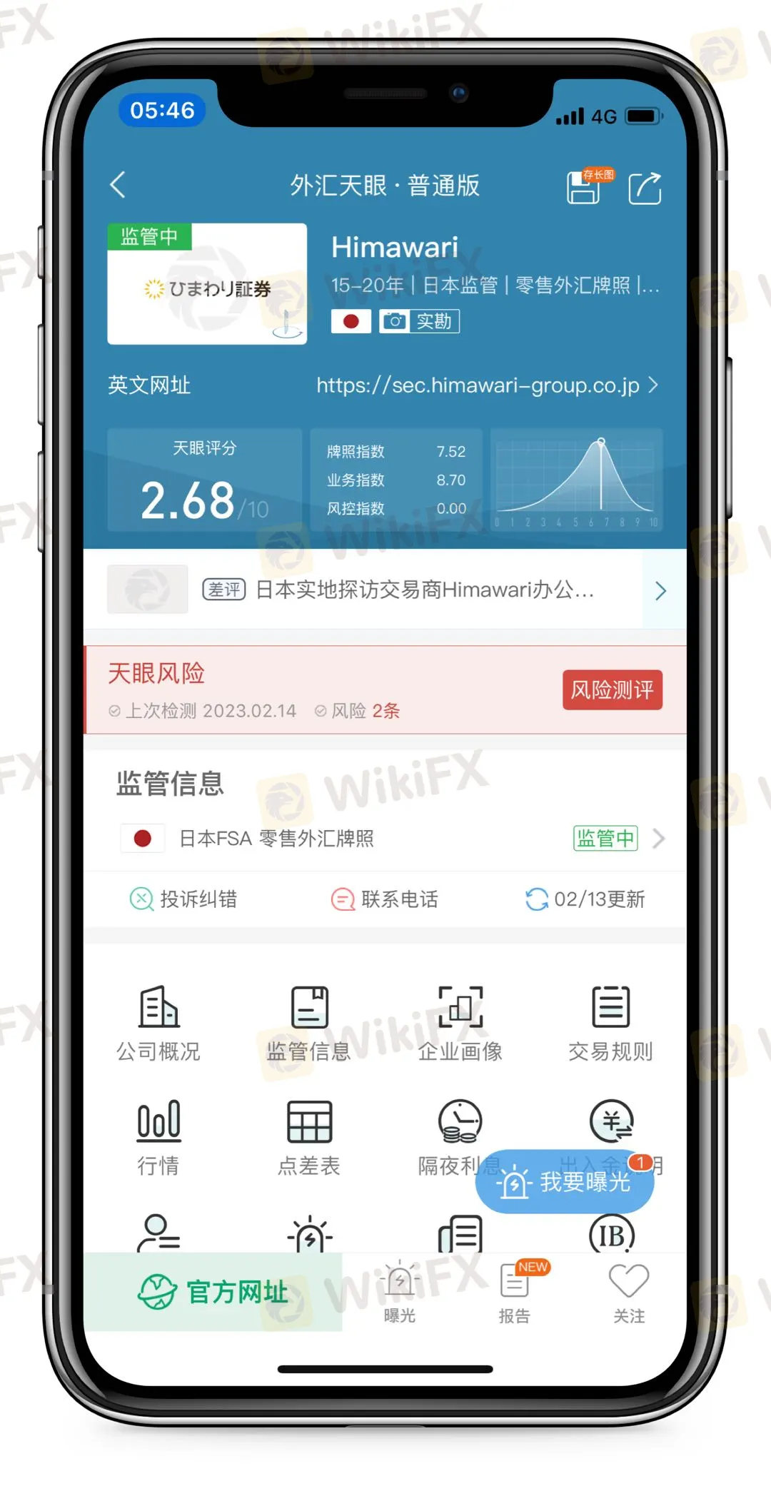 其实有很多方法可以避免出现这样的情况,在做外汇和其他交易之前,可以在我们外汇天眼上面先检索一下该平台是否可靠,就Himawari平台举例,在天眼首页搜索Himawari可以得出如下结果
