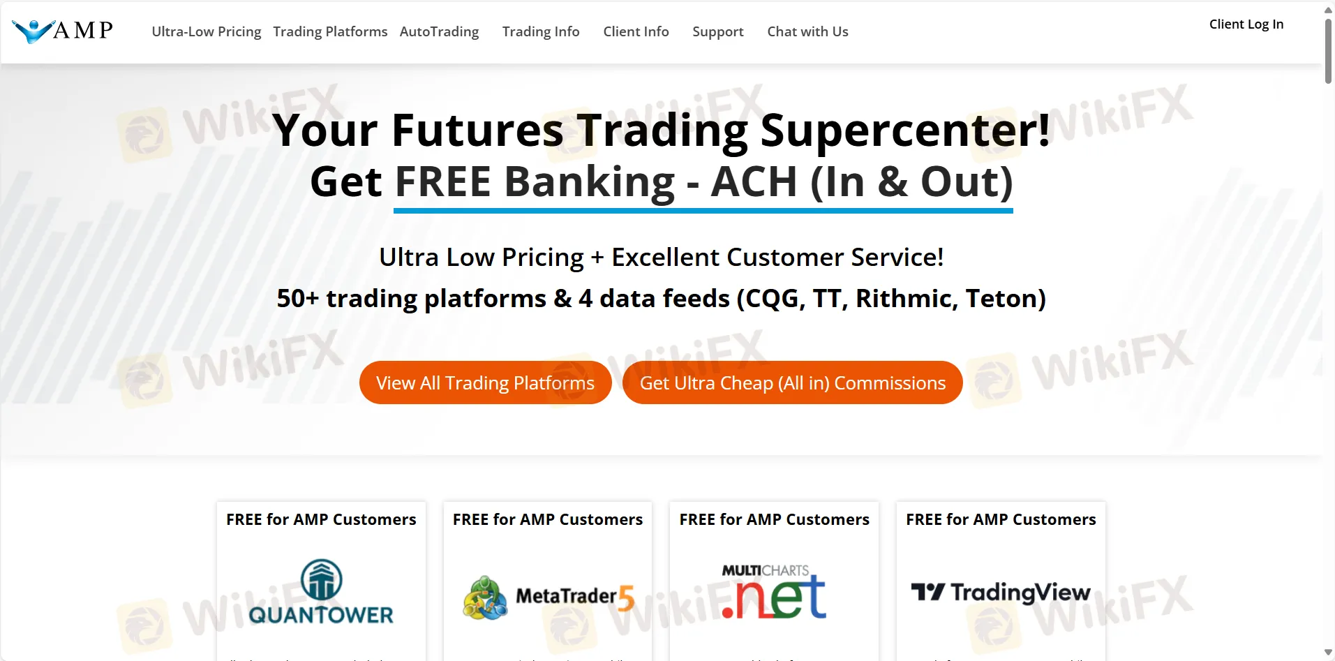 AMP Futures提供对60多个交易平台的访问,有些是免费的,有些是月费。