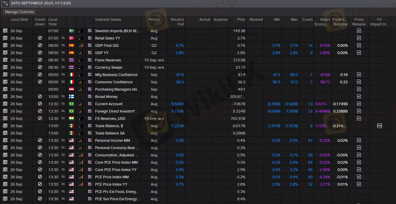 美联储主席昨日的谨慎言论为周五公布的8月份美国个人消费支出(PCE)通胀数据铺平了道路。如下表伦敦证券交易所(LSEG)日历所示,预计8月份美国PCE通胀率将小幅上涨2.7%(7月份为2.6%),而核心PCE通胀率预计将维持在2.9%。