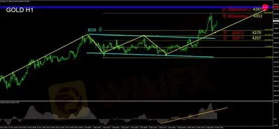 日内有望挑战前波高点(10/20)4381一带,潜在上涨空间约60-70美元。