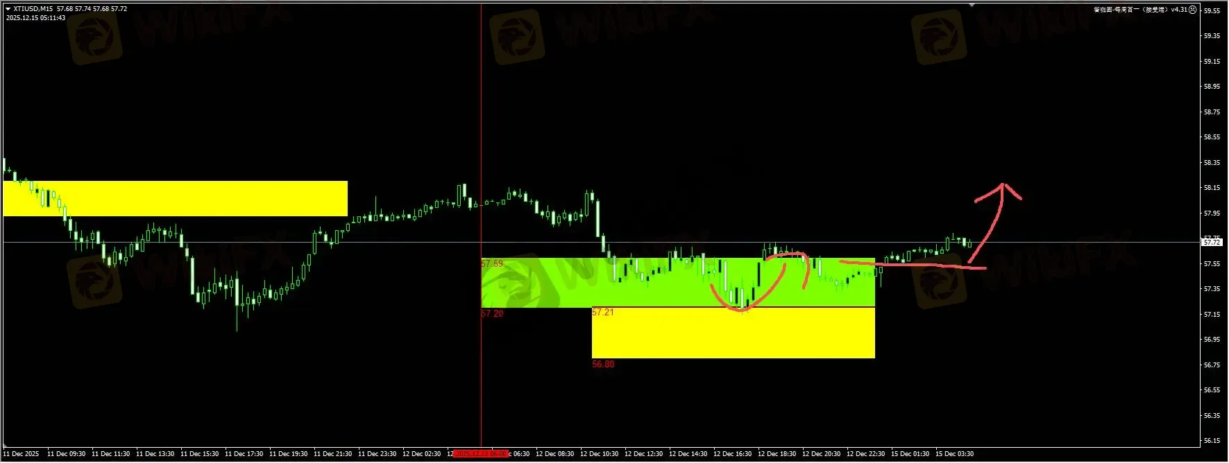 原油:油价隔夜在57上方附近还是出现了企稳的信号,但价格略微打穿了我们的绿色buy limit区域。日内我们看好价格企稳之后,继续震荡上行的走势。操作方面,考虑以动能上破追多,1:1-1:2的盈亏比减仓为主。详细位置请咨询插件。