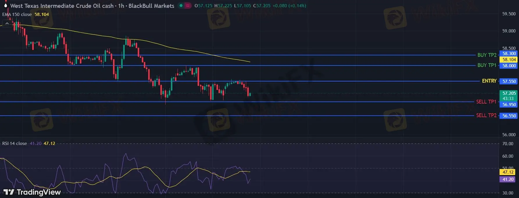 在 57.55 之下,看跌,目标价位为 56.95 ,然后为 56.55 。