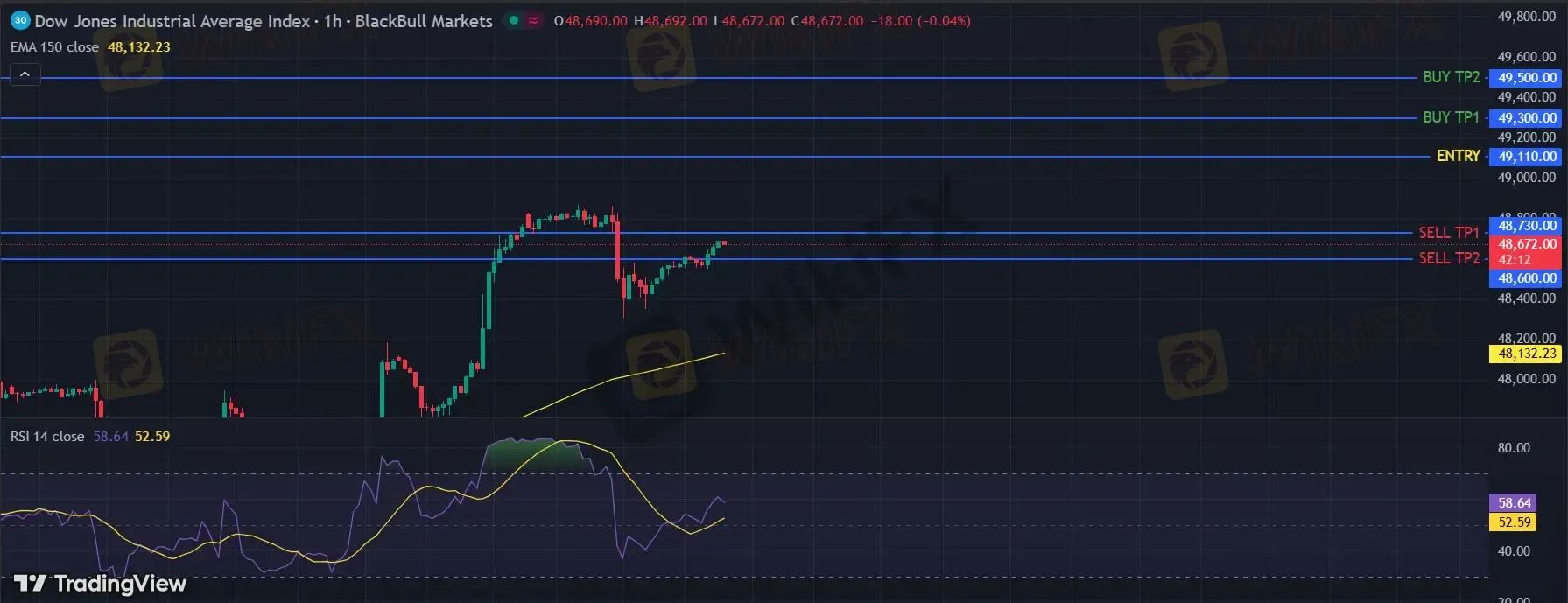 在 49110 之下,看跌,目标价位为 48730 ,然后为 48600 。