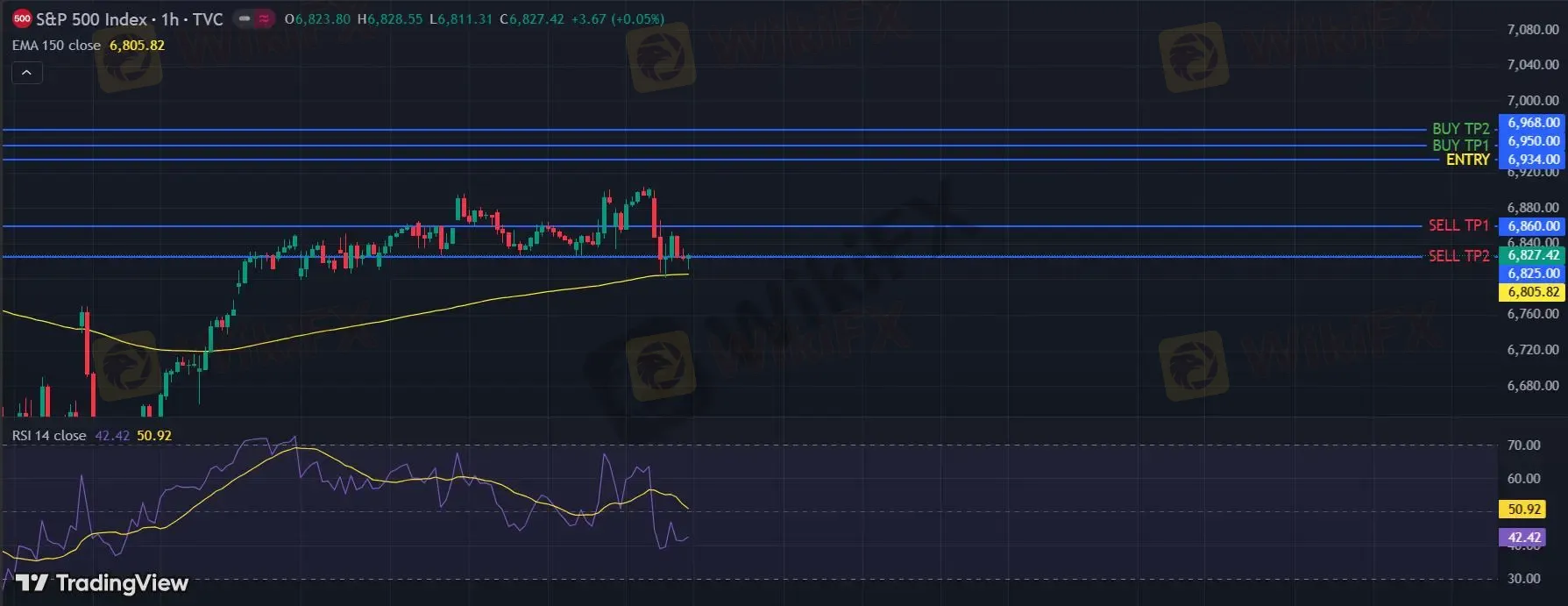 美国标普500指数期货 (H6) 当日内: 期待6860。
