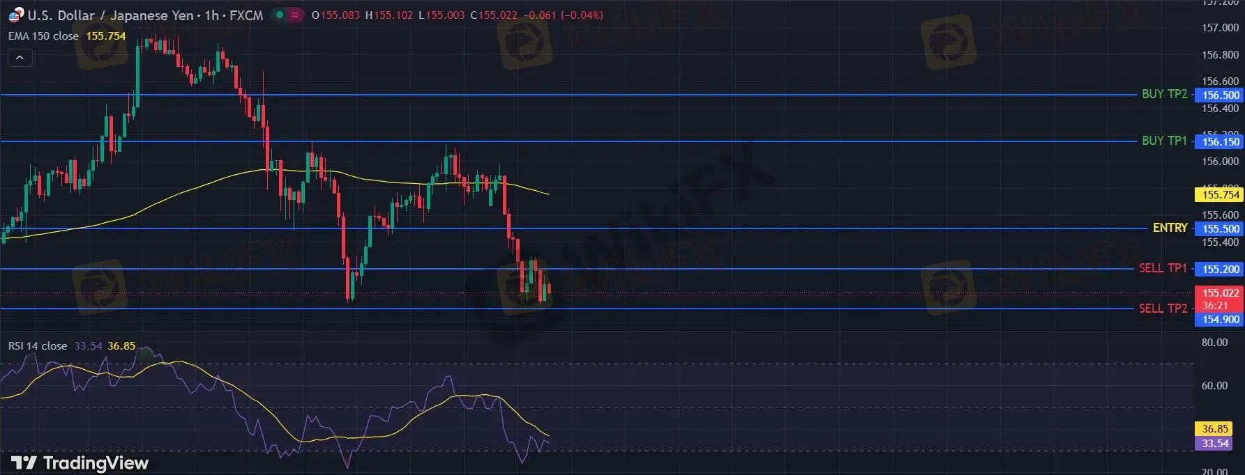 在 155.50 下,看空,目标价位定在 155.20 ,然后为 154.90。