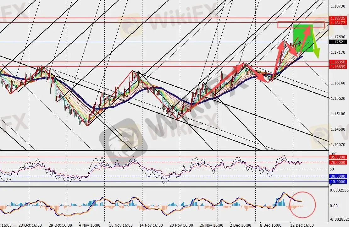 黄金H4级别震荡回落,MACD双线和量能柱在零轴附近收敛。乌克兰和谈的进展为全球金市带来了短期压力,避险需求的减弱导致金价涨幅收窄,但美国就业数据的公布将成为下一个关键转折点。如果数据强劲,可能进一步提振美元并压制金价;反之,若数据疲弱,则可能重燃降息预期,推动金价反弹。