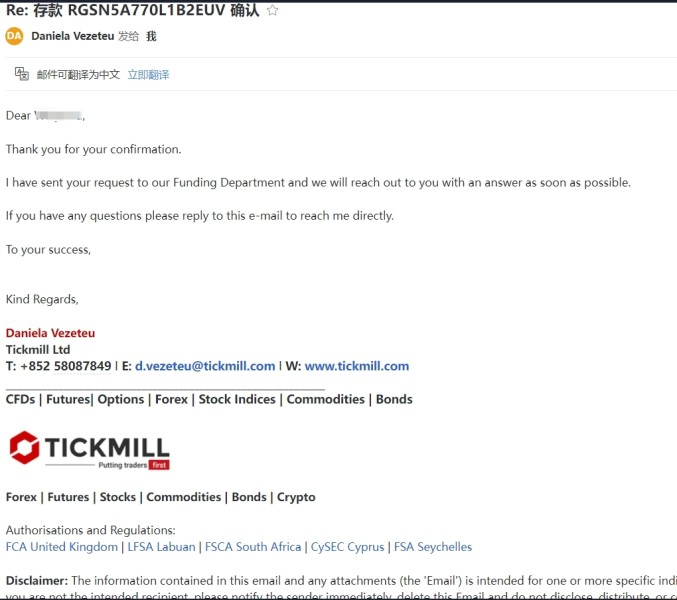 Tài khoản giao dịch Tickmill: 55601861$440.5 Mất phí chứng khoánTổn thất trực tiếp $21,121.15Tổng thiệt hại do sự cố nền tảng: $21,561,65 Tổng khối lượng giao dịch 1,3 lot tiêu chuẩnĐêm 1 tháng 12 (thứ 6) giá thị trường vàng thay đổi khá lớn, để phòng ngừa thứ hai phiên giao dịch bùng nổ, tôi đã tiến hành bổ sung tiền vào kho. Nhưng hệ thống nạp tiền Tickmill có vấn đề và việc nạp tiền thất bại. (Cố gắng hơn 1 giờ không thể nạp tiền)Vào thứ bảy, ngày 2 tháng 12, tôi tiếp tục cố gắng gửi tiền, mặc dù tôi đã gửi tiền thành công, nhưng hệ thống Tickmill đã gửi tiền vào ví và tiền không được gửi vào tài khoản giao dịch. Sau đó, tôi sợ rằng đó là vấn đề của tôi, và tôi đã thực hiện một khoản tiền gửi thứ hai, khá chắc chắn rằng tôi đã chọn để tồn tại một tài khoản giao dịch, nhưng, một lần nữa, Tickmill tồn tại trong ví của tôi.Sau đó, tôi quyết định chuyển tiền từ ví của mình sang tài khoản giao dịch và bị hệ thống Ticmkll từ chối. Tôi lập tức liên hệ với dịch vụ khách hàng của họ qua email để thông báo tình hình này, yêu cầu chuyển tiền của tôi vào tài khoản giao dịch trước khi bắt đầu phiên giao dịch vào thứ hai, tôi cũng nhận được phản hồi của dịch vụ khách hàng, dịch vụ khách hàng của Tickmill biết tình hình của tôi, hơn nữa dịch vụ khách hàng sẽ thông báo cho bộ phận liên quan nhanh chóng xử lý.(Trong một cuộc trao đổi qua email sau đó, Tickmill thừa nhận rằng họ có vấn đề với hệ thống của họ, vì vậy họ không thể gửi tiền vào tài khoản giao dịch!; và dịch vụ khách hàng của Tickmill cũng nói với tôi rằng họ sẽ giúp tôi quay lại, nhưng Tickmill đã không xử lý yêu cầu của tôi!!)Ngày 3 tháng 12Vì sợ Tickmill muốn tôi bùng nổ và sẽ không chuyển tiền của tôi vào tài khoản giao dịch, tôi đã vay tiền của bạn bè và gửi thành công 4000USD vào tài khoản giao dịch. Tuy nhiên, 6362.94USD đã được gửi vào ví vào thứ Bảy và vẫn không thể gửi vào tài khoản giao dịch.Ngày 4 tháng 12Quả nhiên, Tcikmill đã không chuyển tiền vào tài khoản giao dịch của tôi và cuối cùng toàn bộ số tiền bị mất.Toàn bộ sự việc xảy ra, từ đầu, đến giữa, và kết thúc, tôi liên lạc với dịch vụ khách hàng và thông báo cho họ biết yêu cầu của tôi. Bọn họ trì hoãn ta nửa tháng, cho ta câu trả lời cuối cùng là!Đây là vấn đề tiền gửi ngân hàng không liên quan đến bọn họ, hơn nữa chủ nhật tiền gửi ngân hàng là bình thường, tuy rằng thứ bảy chúng ta không chuyển được tiền, nhưng việc cậu nên làm là tiếp tục tiết kiệm tiền là được.Thứ bảy gửi tiền vào tài khoản giao dịch, vì vấn đề của công ty dẫn đến thất bại, không chuyển cho tôi, rõ ràng là vấn đề của công ty, tickmill không chịu trách nhiệm!Thứ bảy, tôi đã liên lạc với dịch vụ khách hàng, và Tickmill cũng biết yêu cầu của tôi, nhưng cũng không giúp đỡ theo yêu cầu của tôi! Nếu nhân viên phục vụ nói không xử lý, tôi cũng sẽ tiếp tục vay tiền vào chủ nhật. Nhưng bởi vì câu trả lời của nhân viên phục vụ, khiến tôi nghĩ công ty sẽ giúp tôi chuyển vào tài khoản giao dịch, tôi tin tưởng công ty!Tôi không còn cách nào khác, bởi vì tôi là khách hàng Trung Quốc, không có nơi công bằng để giúp tôi, nền tảng này thật sự là nền tảng rác rưởi ghê tởm nhất mà tôi từng thấy! Tôi thật lòng nhắc nhở tất cả khách hàng muốn giao dịch trên nền tảng này, tôi gặp phải vấn đề trách nhiệm rõ ràng như vậy, công ty đều có thể từ chối không còn một mảnh, ngẫm lại các người có còn muốn lựa chọn nền tảng rác rưởi này hay không!Tất cả tiền tiết kiệm của tôi, đều bị nền tảng lừa gạt, đây là điều tôi không thể chấp nhận!
