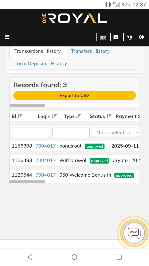 該用戶未證明是ONE ROYAL的交易者