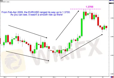 這意味著,即使涉及到美元的交叉貨幣對表現出趨勢的初步走勢,但是在趨勢進程中,仍有可能出現一些劇烈波動的情況。這使得交易者難以判斷,匯價到底是走出趨勢行情,還是維持區間波動。