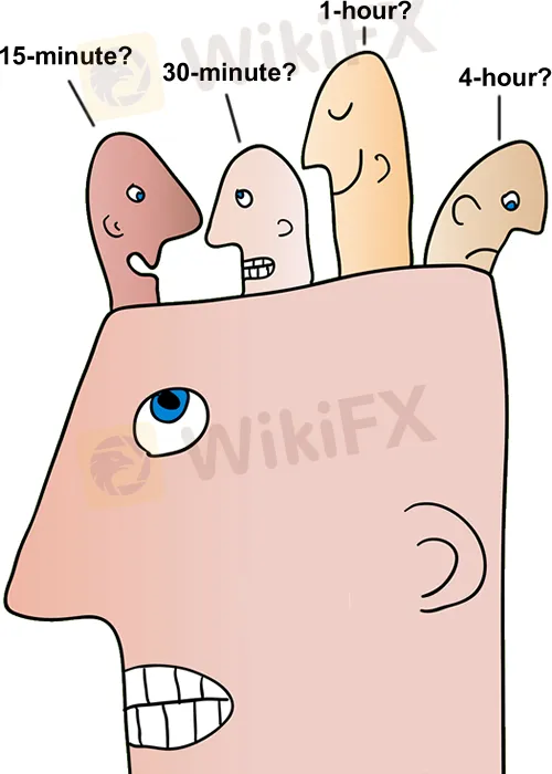 當您試圖確定圖表之間的間隔時間時,只需確保較小的時間範圍可以有足夠的差異來回移動,而每一步都不會反映在較大的時間範圍內。如果時間範圍太近,您將無法分辨出差異,這將毫無用處。