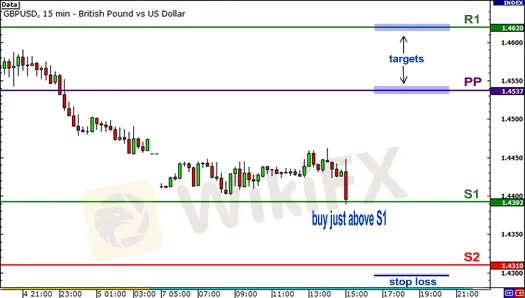 在上圖中,您可以看到價格正在測試S1支撐位。如果您認為它將保持不變,您可以在市場上買入,然後將止損單置於下一個支撐位。