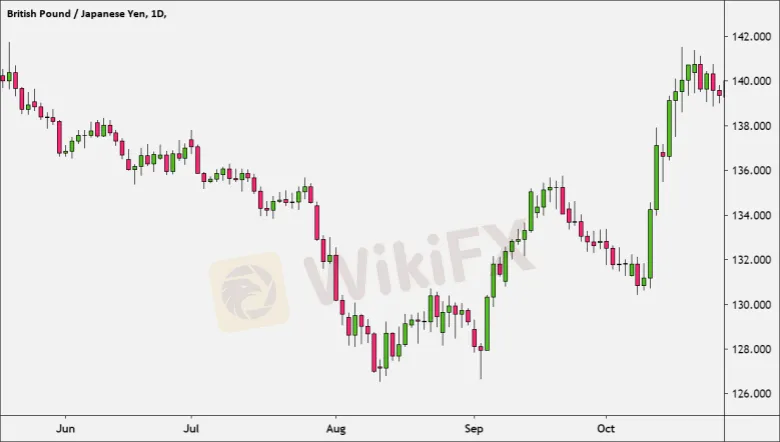 這是用平均k線圖燭臺圖顯示的相同GBP / JPY: