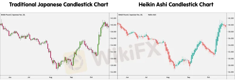 對於初學者來說,這意味著趨勢更容易看到。對於有經驗的交易者,平均k線圖圖表幫助他們保持趨勢交易,同時仍然能夠看到經典的圖表模式設置。平均k線圖燭臺看起來與傳統的日本燭臺相似,但它們有所不同,因此請不要混淆兩者。