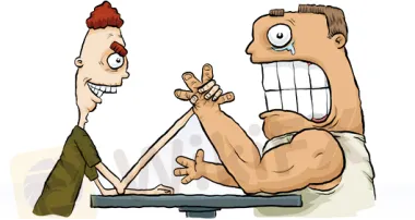 就像這個在參加扳手腕比賽的傢伙,儘管他瘦骨嶙峋,但他的小臂很長。儘管他的對手很壯,這都不重要。他可以利用前臂產生的杠杆作用,贏得比賽。