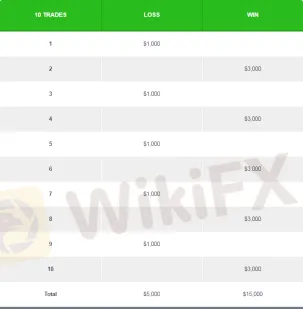 當您潛在的收益是風險的3倍時,這時候進行交易可以增加您獲利的幾率。如果您的外匯交易收益風險比是3:1,您有極大的可能獲利,以下表作為參考: