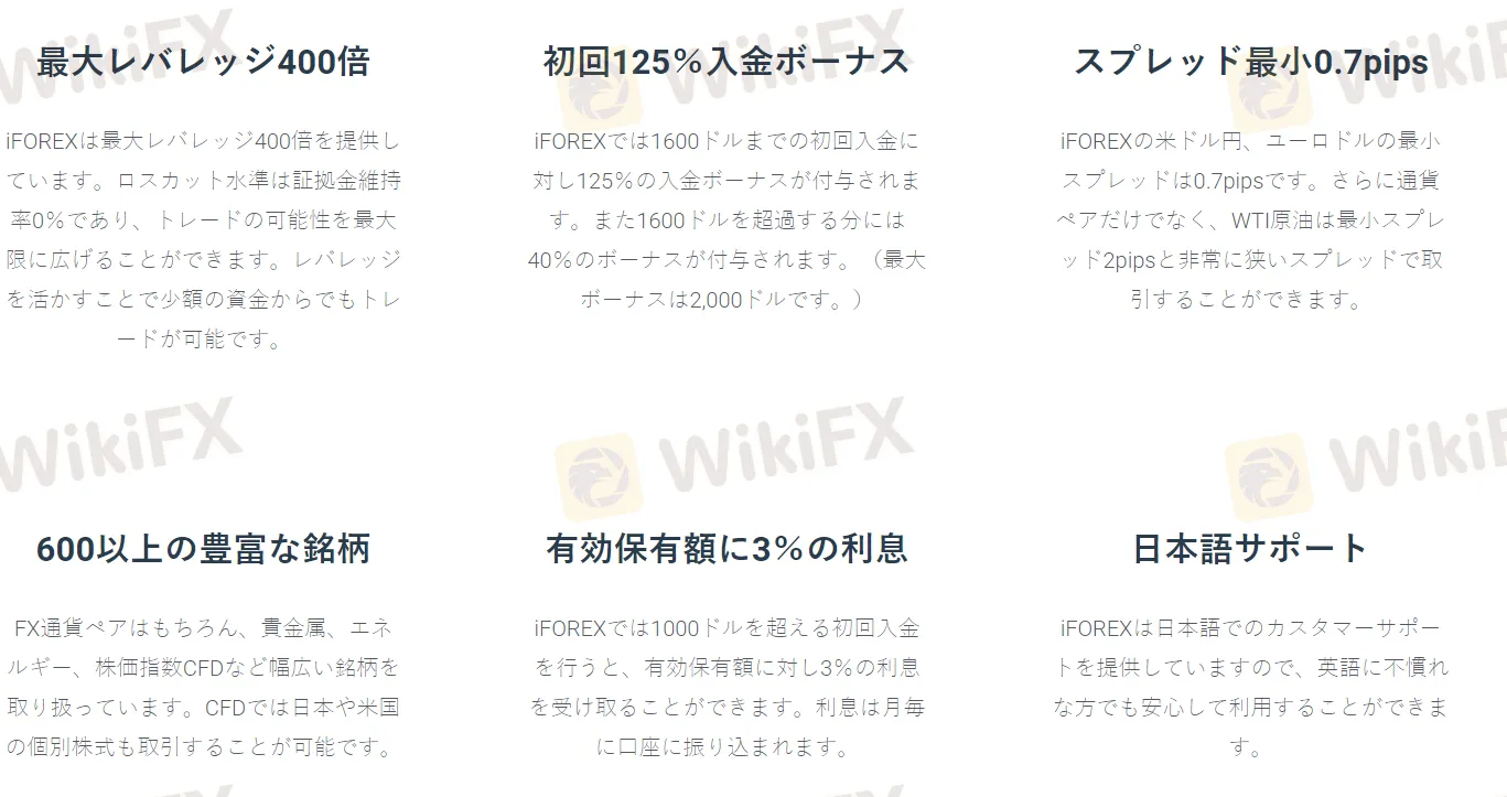 首先我們打開這間券商會發現他非常大方的,提供了6大保證,分別是: 最大槓桿400倍、首 125% 存款獎金、點差最小 0.7pips、600多個豐富的品牌、有效持股的 3% 利息、日語支持。