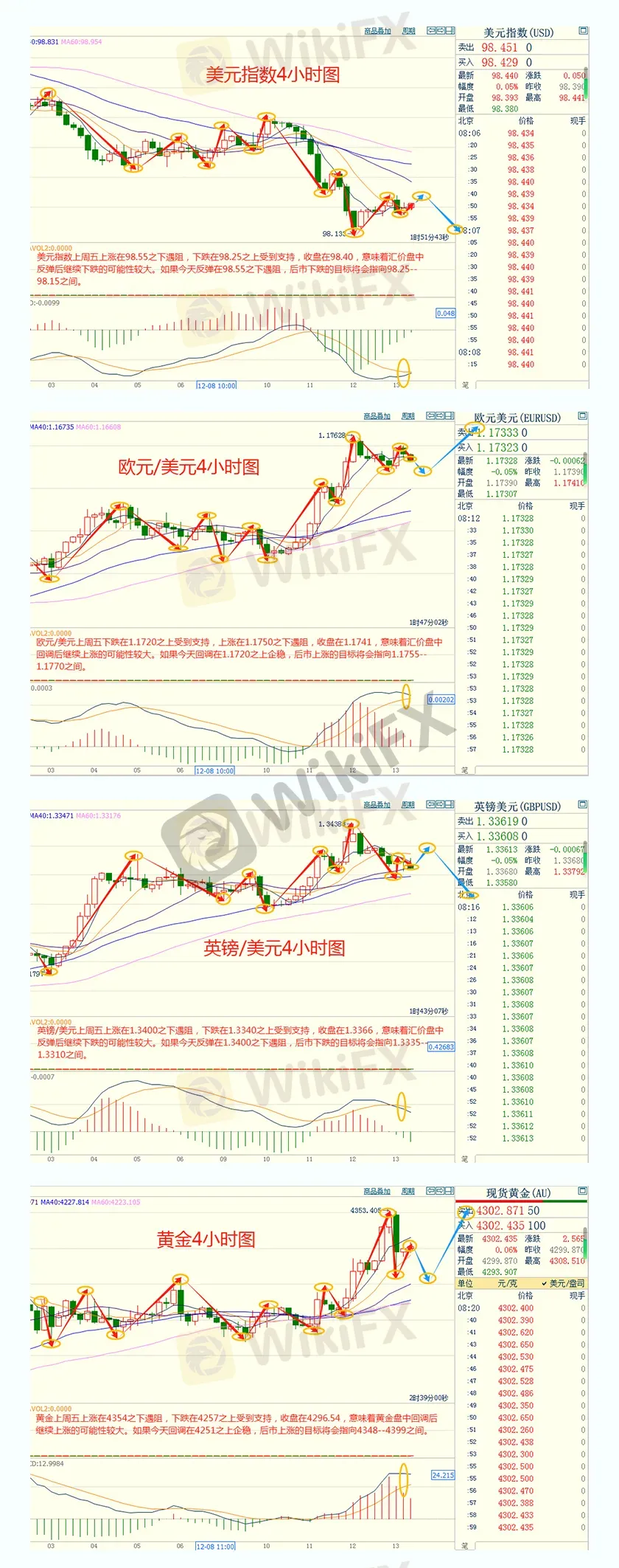 摘要:CWGMarkets市場資訊2025年12月15日(週一):匯訊摘要:上周五,美元指數有所反彈,但在美盤時段幾乎回吐日內全部漲幅,最終收漲0.04%,報98.40,周線錄得三連陰;基準的10年期美債收益率最終收報4.184%,對美聯儲政策利率敏感的2年期美債收益率收報3.533%。上周五(12月12日)金價表現出色,現貨黃金上漲0.48%,收報每盎司4300美元附近,盤中最高觸及4353美元/盎司