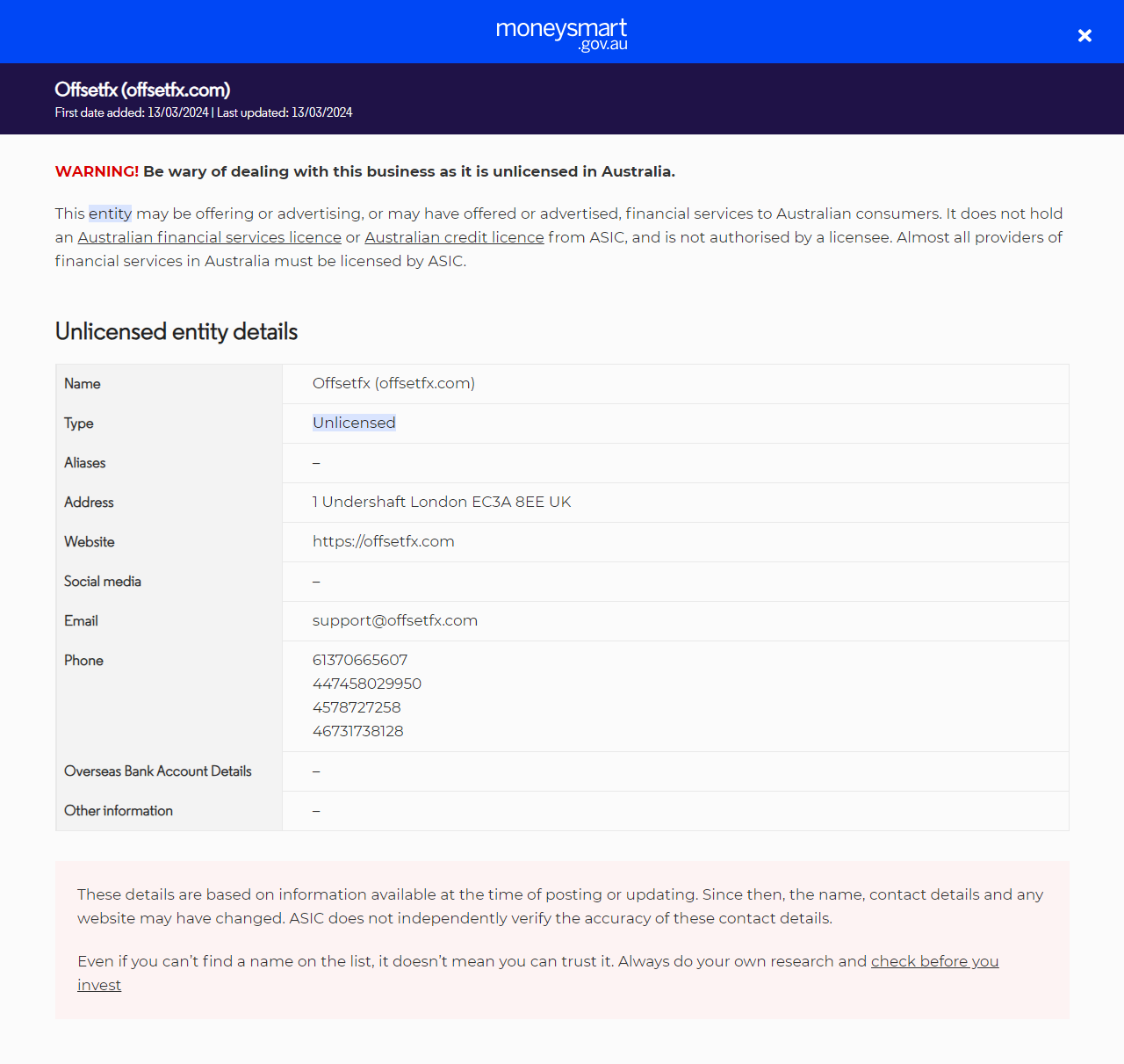 向澳大利亞境內人士提供金融服務(包括金融產品)而未持有許可證。他們未持有澳大利亞證券投資委員會(ASIC)頒發的澳大利亞金融服務(AFS)許可證或澳大利亞信貸許可證。
