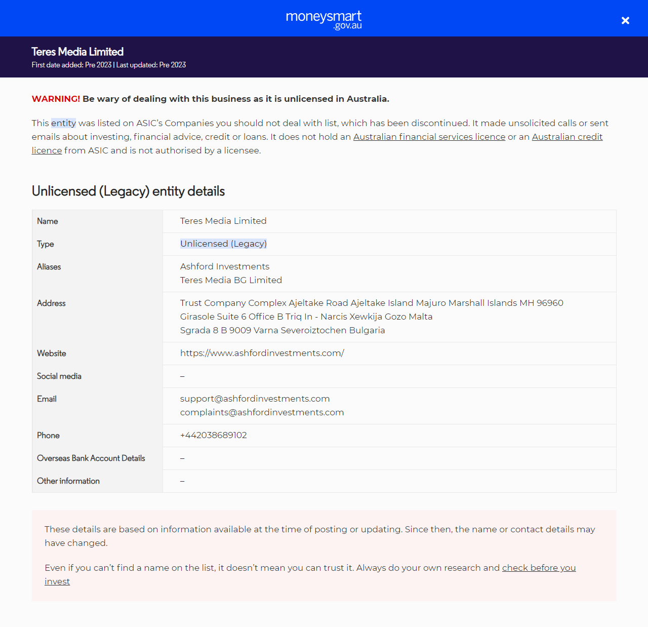 電子郵件support@ashfordinvestments.comcomplaints@ashfordinvestments.com